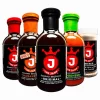 Dark Brown Sugar, Honey, Grape Juice, Tomato Paste, Water, Molasses, Distilled Vinegar, Potato Starch, Jank Blend (Spices, Salt), Hickory Smoke Flavor, Salt, Hot Sauce (Aged Peppers, Distilled Vinegar, Salt), Xanthan Gum Powder (thickener), Mustard Flour, Garlic Powder, Crushed Red Pepper, Black Pepper, Cayenne Pepper, Onion Powder, Paprika.