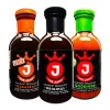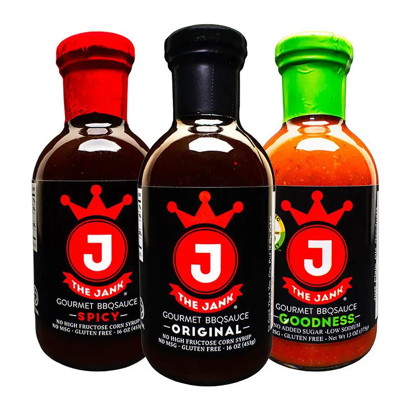 Dark Brown Sugar, Honey, Grape Juice, Tomato Paste, Water, Molasses, Distilled Vinegar, Potato Starch, Jank Blend (Spices, Salt), Hickory Smoke Flavor, Salt, Hot Sauce (Aged Peppers, Distilled Vinegar, Salt), Xanthan Gum Powder (thickener), Mustard Flour, Garlic Powder, Crushed Red Pepper, Black Pepper, Cayenne Pepper, Onion Powder, Paprika.